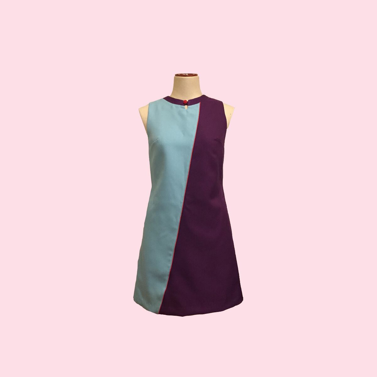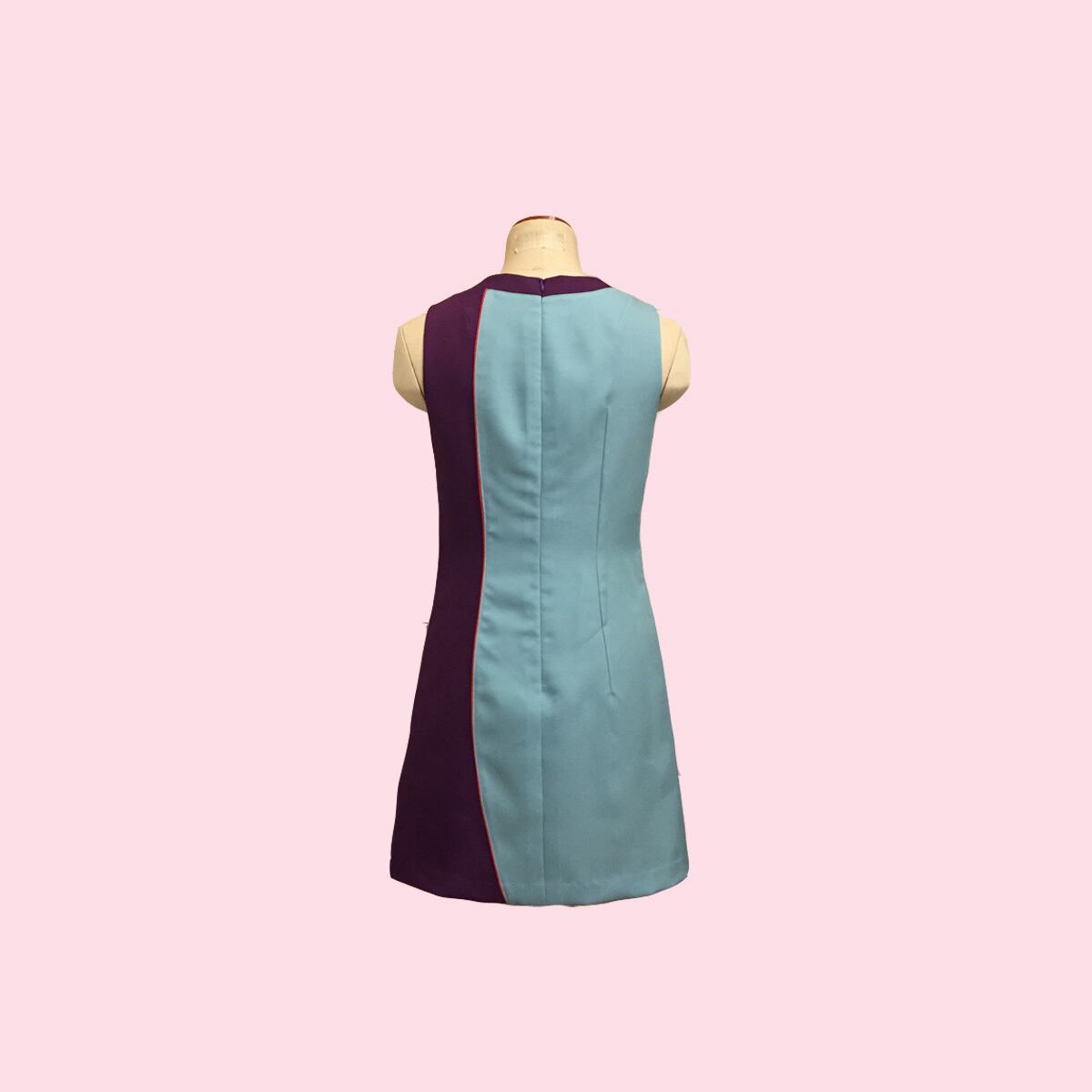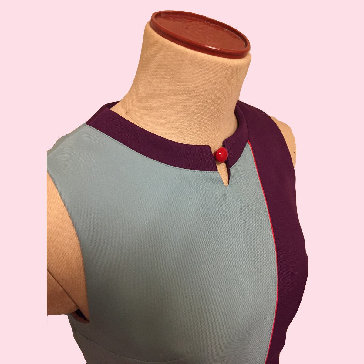 ノーカラーノースリーブ、大胆な配色切り替えが、60sチックなデザインのワンピースvittoriaのアレンジバージョンです。