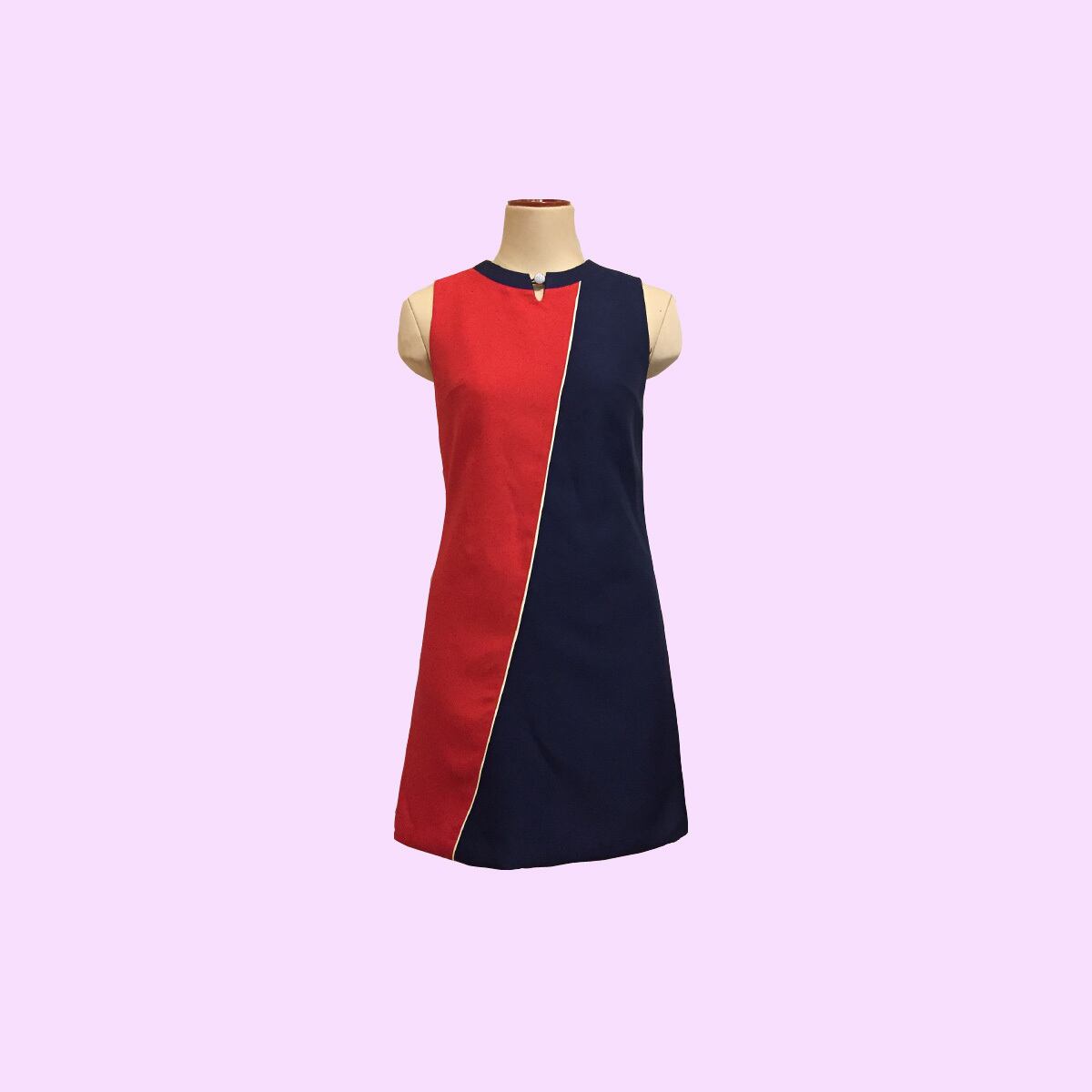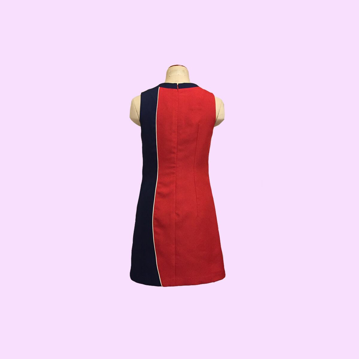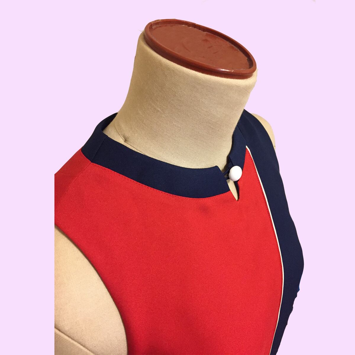 ノーカラーノースリーブ、大胆な配色切り替えが、60sチックなデザインのワンピースvittoriaのアレンジバージョンです。