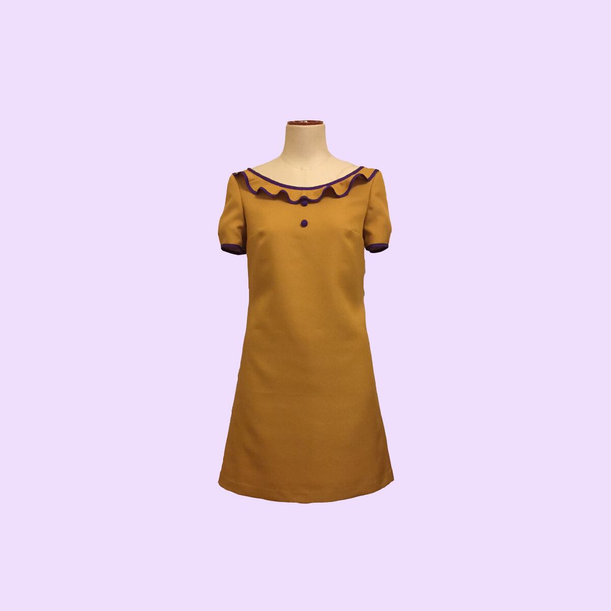 衿のフリル、大きく開いた衿ぐりがチャーミングなワンピースです。