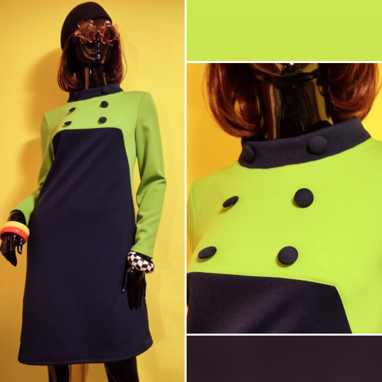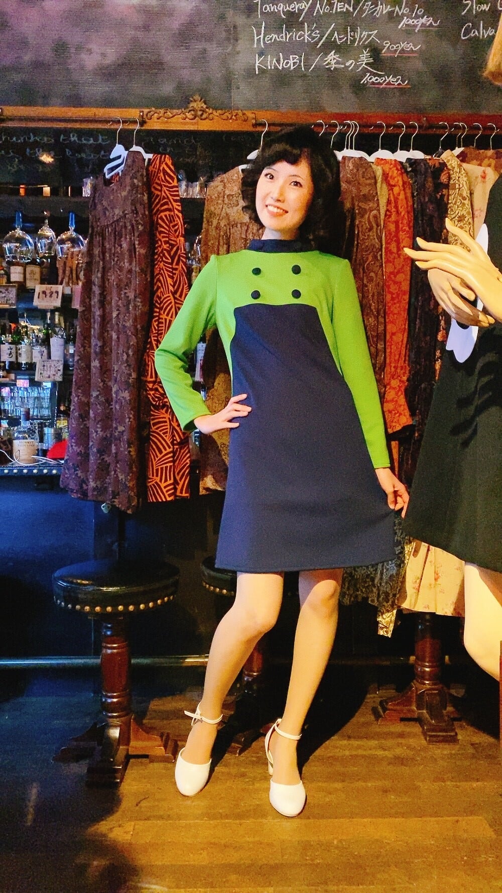 後ろ開きハーフスリーブ、60sテイストの切替デザインワンピース。