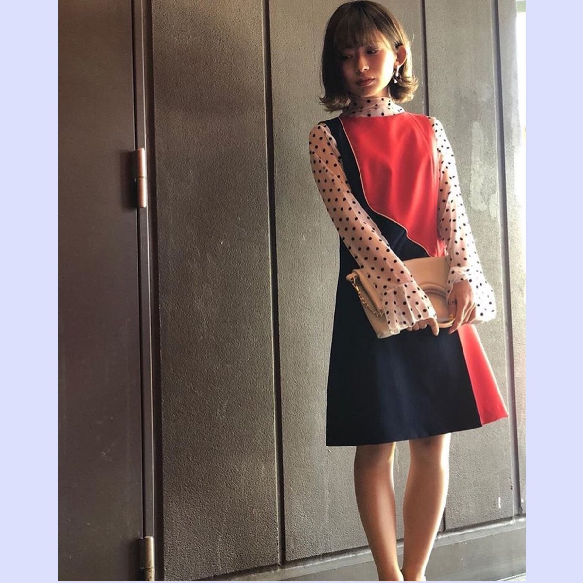 後ろ開きノースリーブ、60sチックなアシンメトリーデザインの袖付きワンピースjeanne2のアレンジバージョンになります。